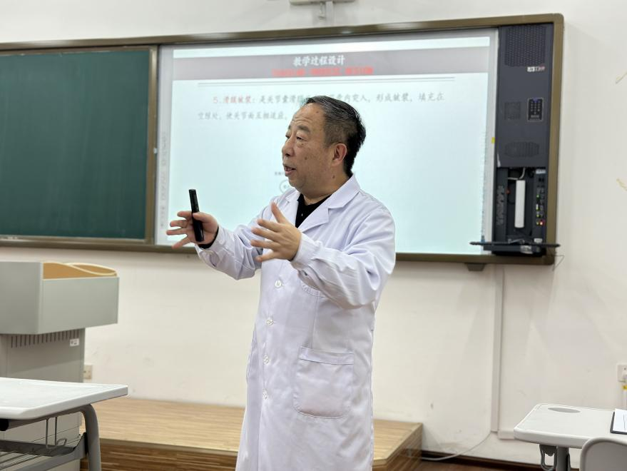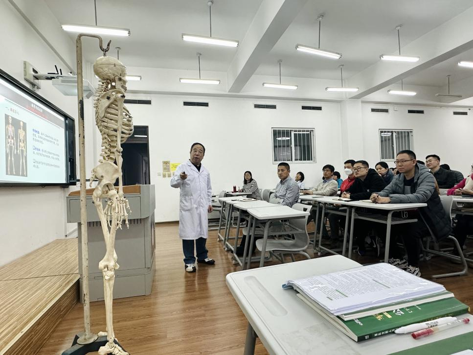 示范课中,张海平教授以《运动解剖学》课程中“关节概述”为主要内容展开讲解,系统介绍了人体骨骼的组成、类型、作用及特点等方面内容。课程中,张海平教授的讲授课程教学理念先进、教学过程生动细致、课程思政融入潜移默化,得到了现场观摩教师的一致好评。