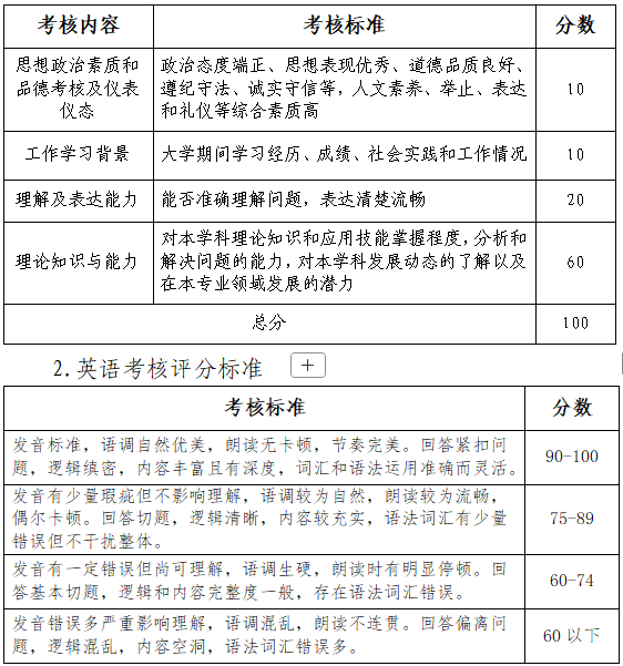 专业面试由专业考官现场独立评分,取中间分,英语由英语考官现场独立评分,取平均分,考生现场确认成绩。