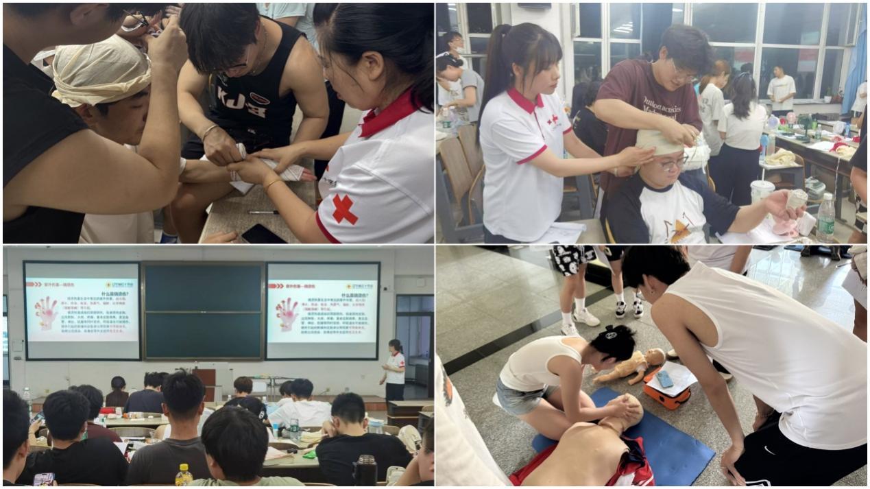 培训中,导师们系统讲授了止血、包扎、骨折固定等常见急救技能的操作要点,并结合真实案例,详细示范了心肺复苏术(CPR)的全流程——从判断患者意识、紧急呼救,到规范进行胸外按压和人工呼吸。在随后的实操环节,同学们在导师的指导下,分组进行了包扎练习与CPR全流程的模拟演练。