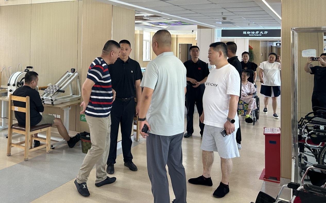 在基地负责人李子松的陪同下,王立东书记一行深入考察了医院健康管理中心、成人康复中心及儿童康复中心。调研组实地察看了各中心的医疗设施设备配置情况,详细了解了其服务对象、患者需求、主要诊疗方式及运营模式,并重点就中心的未来发展规划及人才需求进行了交流,听取了相关发展情况的介绍。